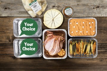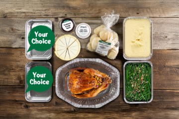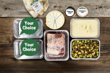 Stew’s fully roasted turkey is served with mashed potatoes, green beans almondine, a dozen snowball rolls, cranberry sauce, turkey gravy, and a NY Style Cheesecake. Your choice of two additional sides